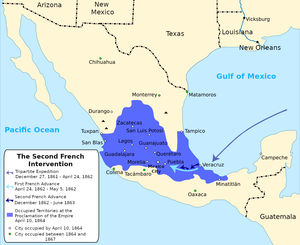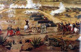 We have a portrait of Maximilian, two depictions of the Battle of Puebla, a map of the French and Republican occupation, a painting showing Juarez standing up to the French and a depiction of the execution of the Emperor.