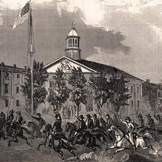 We have a map of the Gettysburg Campaign and two depictions of Confederate cavalry in Chambersburg and civilians trying to make defenses at Harrisburg. We also have a map of the Tullahoma campaign and photos of Wilder and Minty.